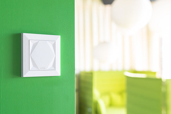 De Loxone Touch for Nano is een module die kan worden aangesloten op de Loxone Nano IO Air of de Nano Dimmer Air. Het heeft vijf aanraakpunten om de belangrijkste functies van een kamer te bedienen. Wanneer je een knop aanraakt, vindt er een klik plaats als akoestische bevestiging.